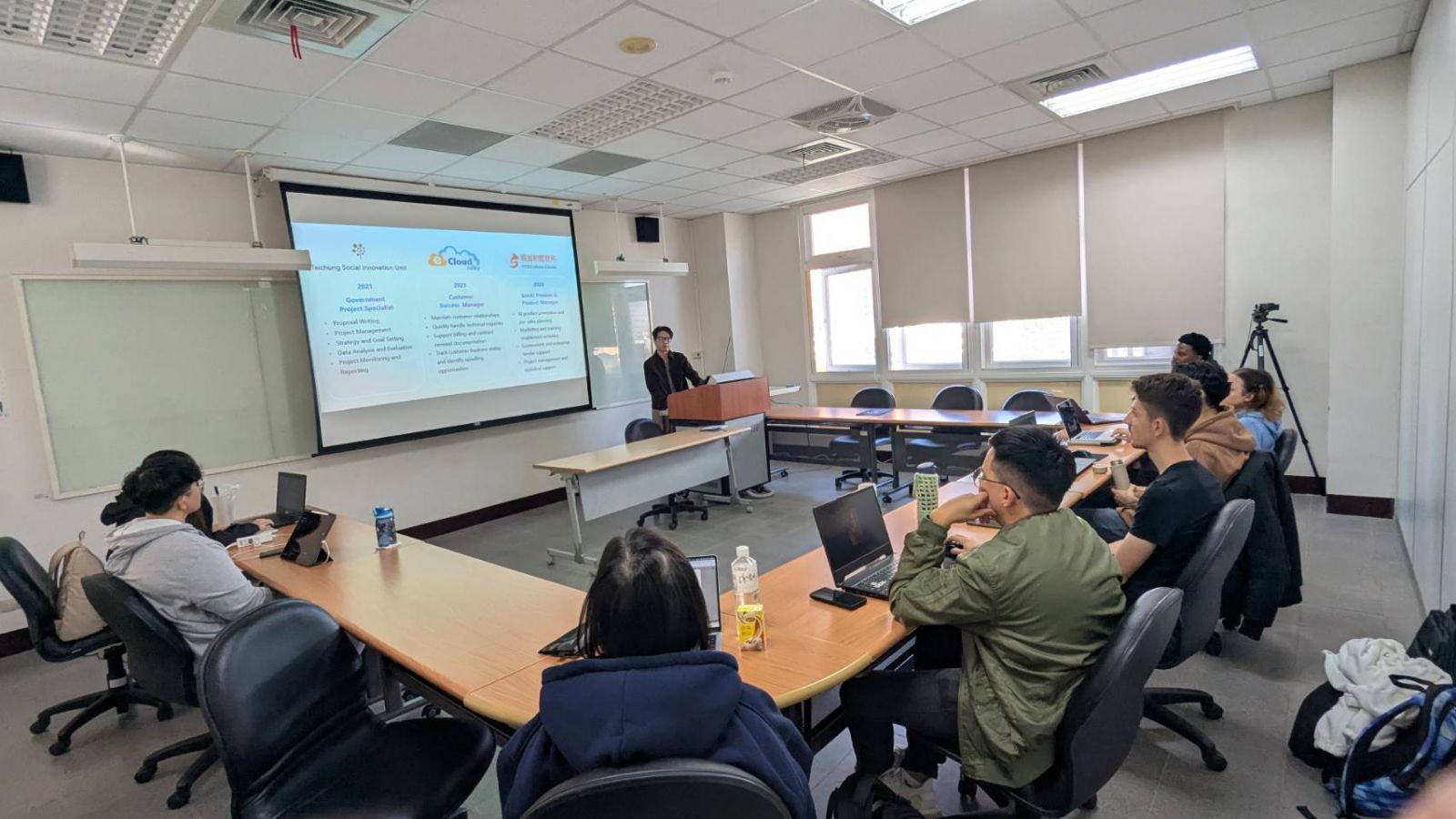 On November 20, 2025, Asst. Prof. Chang invited Elijah Huang, a cloud solution specialist from Systex Software , to deliver a special lecture titled "Microsoft Copilot at Work: Re-imagining Knowledge Work." The lecture explored how generative AI and cloud tools transform workflows, while emphasizing the need for critical thining and data literacy to anage AI's limitations and risks in professional practice.