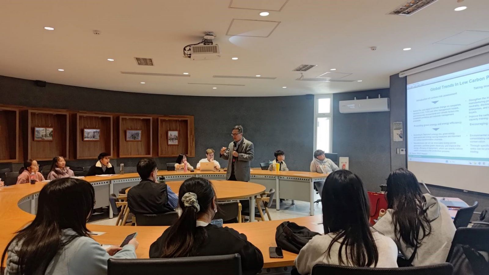 On March 19th, 2025, Dr. Lo invited Dr. Jack C. Chang , Industrial Technology Research Institute to give a special lecture "The Threat and opportunity for Industry under the Global Trend of Net Zero Carbon Emissions, which mainly shares global net-zero carbon trends and carbon tax frameworks, guided students to discuss their implications for Taiwan's industries.